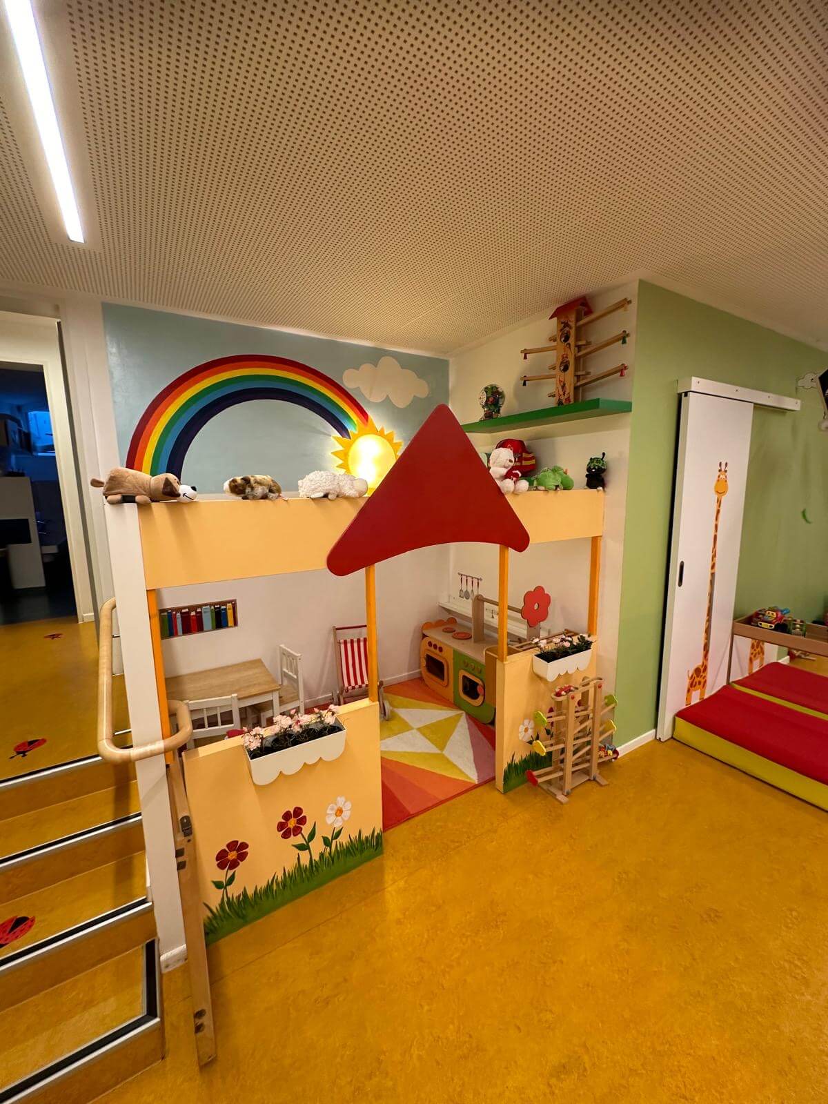 Unter ihrer Führung entwickelte sich das Raabennest zu einer stabilen, beliebten Einrichtung mit heute 55 Kindergartenplätzen. Bald wuchs außerdem der Wunsch vieler Familien nach Betreuung für unter Dreijährige. Nach langer Suche fand sich 2004 ein ideales Zuhause in Grünwald: Eine großzügige Hausbesitzerin stellte ihre Räume samt großem Garten zur Verfügung. Dort eröffnete im September 2004 die Kinderkrippe Raabennest, die seither mit 27 Plätzen fester Bestandteil unseres Vereins ist.